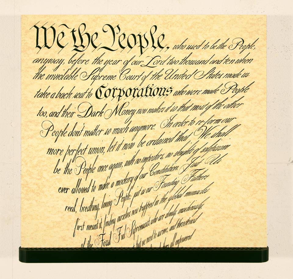 We the People, Not CorporationsWe the People, SuppressedFEMA Climate Crisis ExhibitionTwenty-first Century ThanksgivingLiar, LiarAnd the Boys Played OnHappy Motoring!Our Hour of Darkness - based on the FEMA Flood Map: Chelsea, NY CityFEMA Flood Map - Alexandria, VAWho Needs Regulations?!This Priest Wants YouDeification ProjectionGreat Leaders Accomplishing Mission of Mutual Enrichment!Unknown SoldierWe the People, Not Corporations (full page)